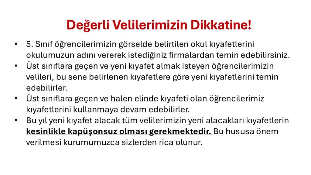 2025-2026 Eğitim Öğretim yılında okulumuzda öğrencilerimizin okul kıyafetlerini aşağıdaki görselden inceleyerek temin edebilirsiniz.